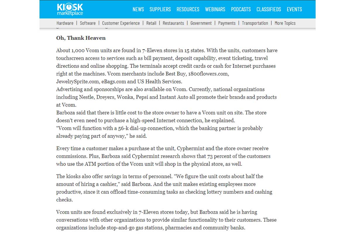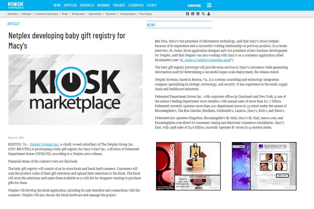 Pioneered interactive technologies to provide the in-store customer with access to information to influence a customer’s buying decisions.